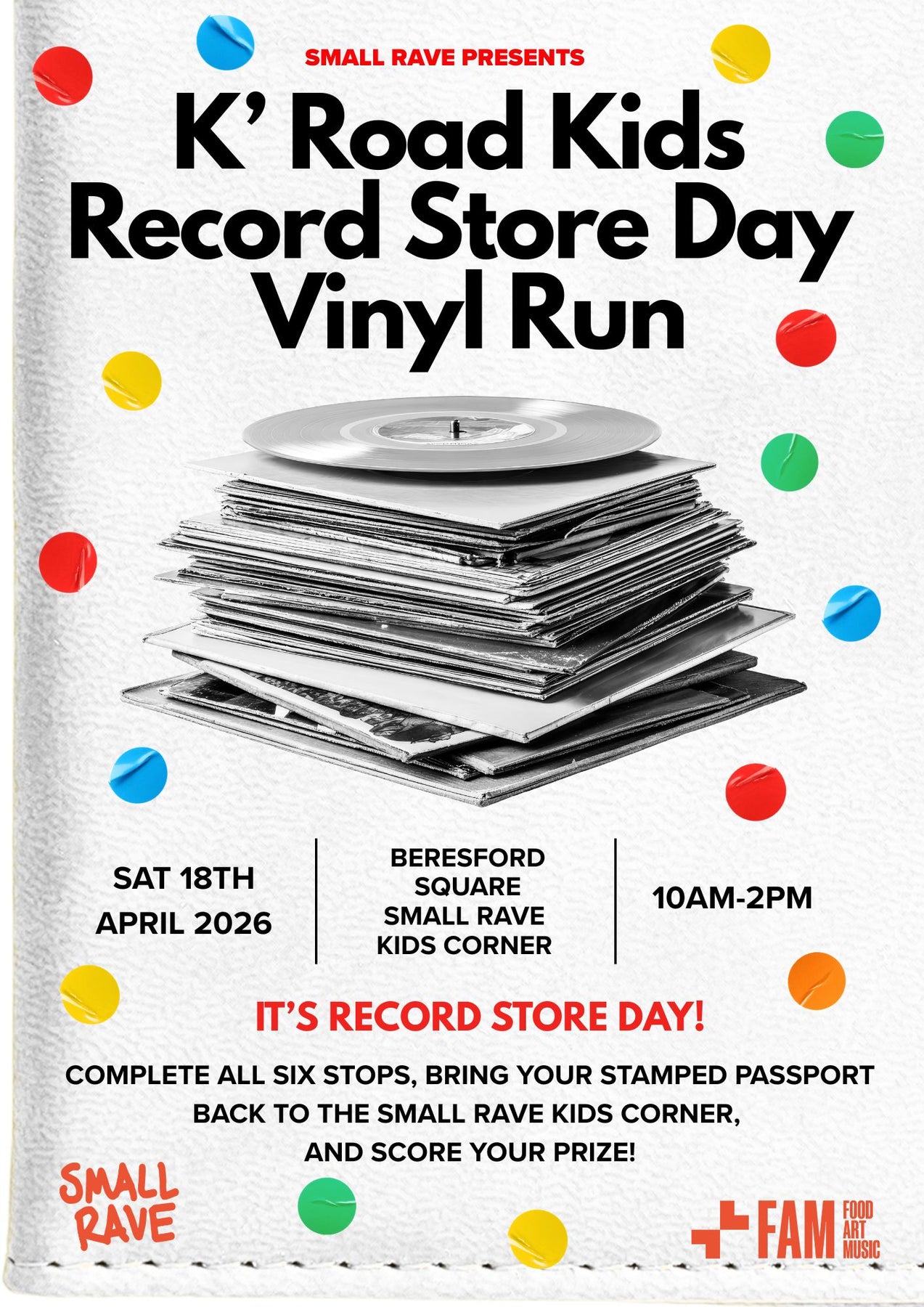 COMPLETE ALL SIX STOPS, THEN BRING YOUR STAMPED PASSPORT BACK TO THE SMALL RAVE KIDS CORNER TO SCORE YOUR PRIZE!